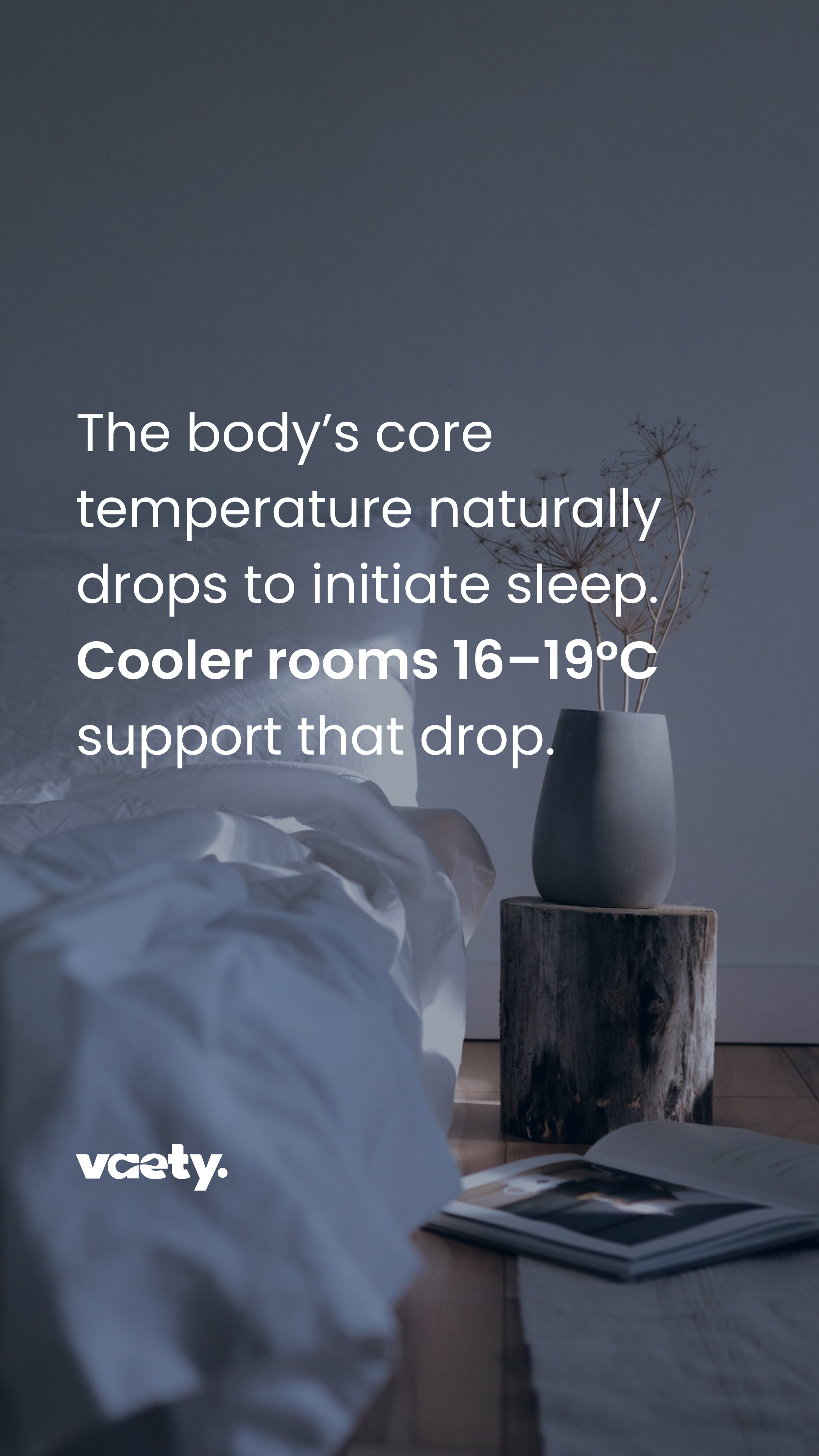 The body’s core temperature naturally drops to initiate sleep. Cooler rooms 16–19°C support that drop, promoting deeper, more restful sleep.